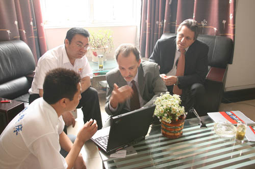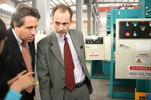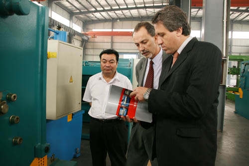 Aldo Strobbe Turk先生和Michael Can先生分別是秘魯一家專業機械進出口公司的采購經理和銷售經理。他們此行的目的是對我公司進行實地參觀考察,并尋求以中德在秘魯獨家代理的形式與中德達成合作意向。公司領導熱情地接待了兩位外商。公司領導首先給秘魯客商介紹了我公司近年來產品的研發、生產、銷售情況以及我公司產品在國內外市場的影響和地位。隨后陪同外商參觀了成品車間并現場演示運行了機器,裝配車間,大件車間和零件倉庫。參觀完后,兩位秘魯客商都對我公司產品的機型型號、生產制造技術、零配件等諸多方面非常滿意,并愿以在秘魯獨家代理的形式與中德建立長期穩定的合作關系。