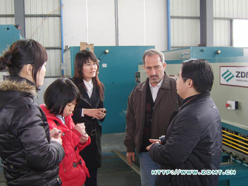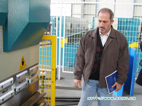 Haiyl A.AI Rawy先生對(duì)中國機(jī)械行業(yè)尤其是剪板機(jī)折彎機(jī)非常的熟悉,他表示他們非常重視機(jī)器的質(zhì)量,來中德也是由于中德機(jī)器在海內(nèi)外都享有良好的聲譽(yù)。參觀前,Haiyl A.AI Rawy還特意詢問我們?cè)诎⒙?lián)酋有沒有代理,當(dāng)公司領(lǐng)導(dǎo)回答說目前還沒有時(shí),他釋然一笑,表示希望能夠與中德建立良好的合作關(guān)系。在中德的成品車間,Haiyl A.AI Rawy先生聽取了我公司營狀況及近遠(yuǎn)期規(guī)劃的介紹,并就每一款機(jī)床的詳細(xì)情況進(jìn)行了介紹,重點(diǎn)詢問了其性能及售價(jià)等。他對(duì)我們的數(shù)控折彎機(jī)尤其感興趣,要求當(dāng)場(chǎng)進(jìn)行測(cè)試。Haiyl A.AI Rawy特意讓自己的助理拍下了整個(gè)操作過程,在我公司工程師的幫助下,Haiyl A.AI Rawy還進(jìn)一步了解了折彎機(jī)數(shù)控系統(tǒng)的編程方面的問題。
