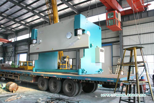 由于機器體積較大,高度超過3.5米,重量在50噸以上,所以采用了分體式運輸,工作臺與機器主體分離開來。這種大型機床由于其體積與重量的關系,并不是很常見,需求量相對來講少點,而對制造商的要求也相對比較高,其中無不體現中德產品在客戶心目中認可度!