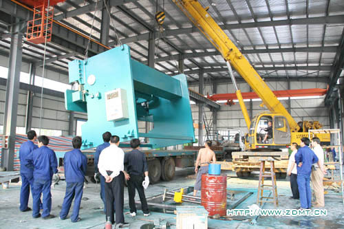 2008年5月7日下午,我公司自主研發的500噸6米(產品型號:WC67Y-500/6000)大型液壓板料折彎機下線并進入交付運輸環節。 該產品系應國內某大型企業要求定制!這其中凝聚了中德研發人員和生產人員的不懈努力,他們上下齊心協力相互配合,在這個生產計劃已經排得滿滿的時期,保質保量的完成了這臺大型機器。